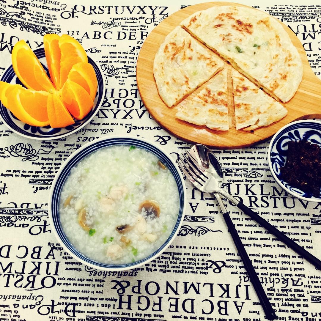 香菇滑鸡粥and手抓饼,周日的美好从这里开始,Good morning !