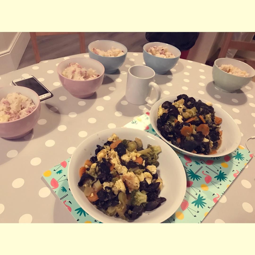 昨晚 培根土豆饭 木耳胡萝卜鸡蛋西兰花乱炖