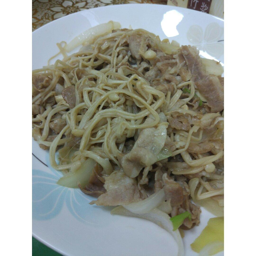 肥牛金针菇。做了晚饭开始包馄饨,该晚安啦