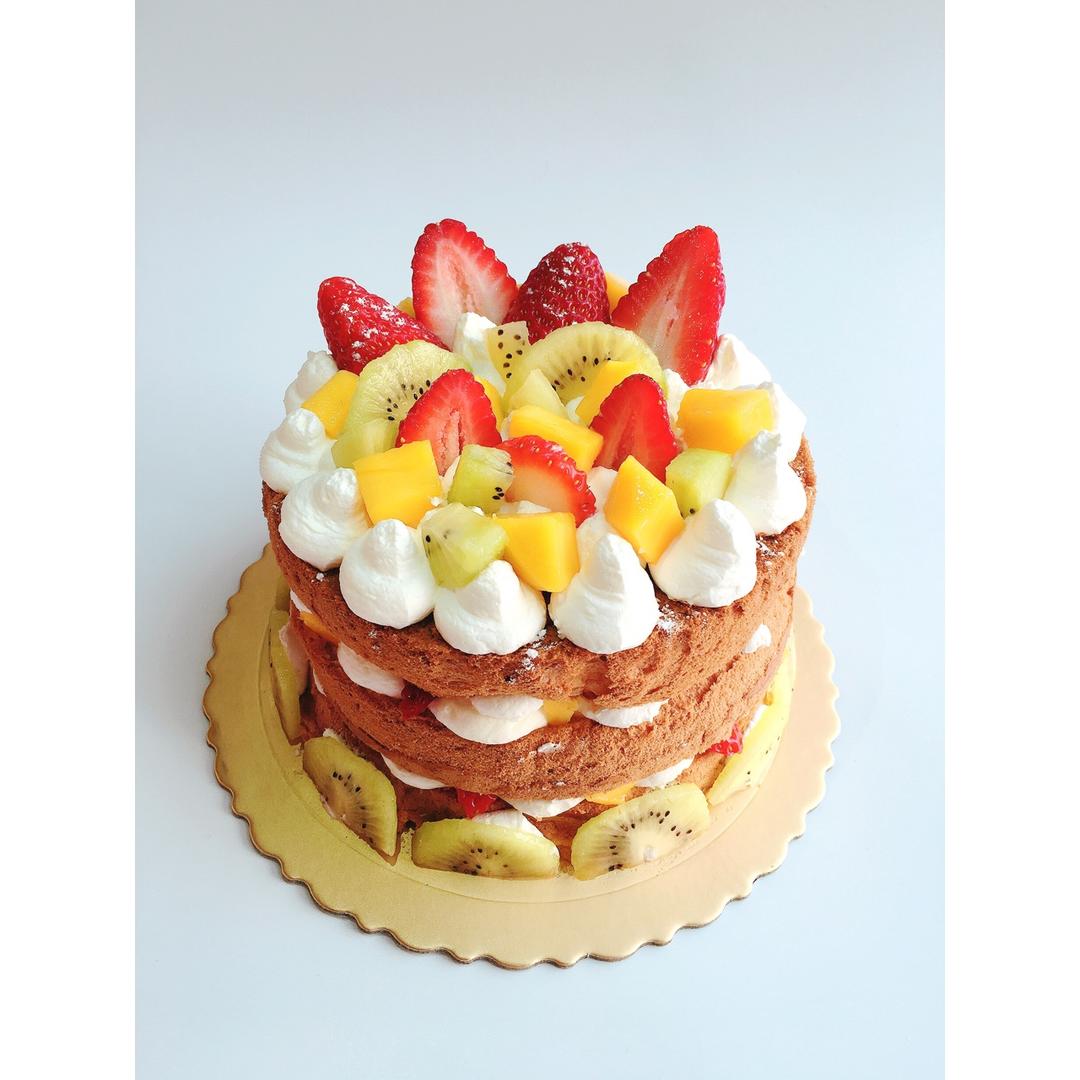 【零失败】不会裱花没关系的水果裸蛋糕 芒果裸蛋糕 完美戚风胚
