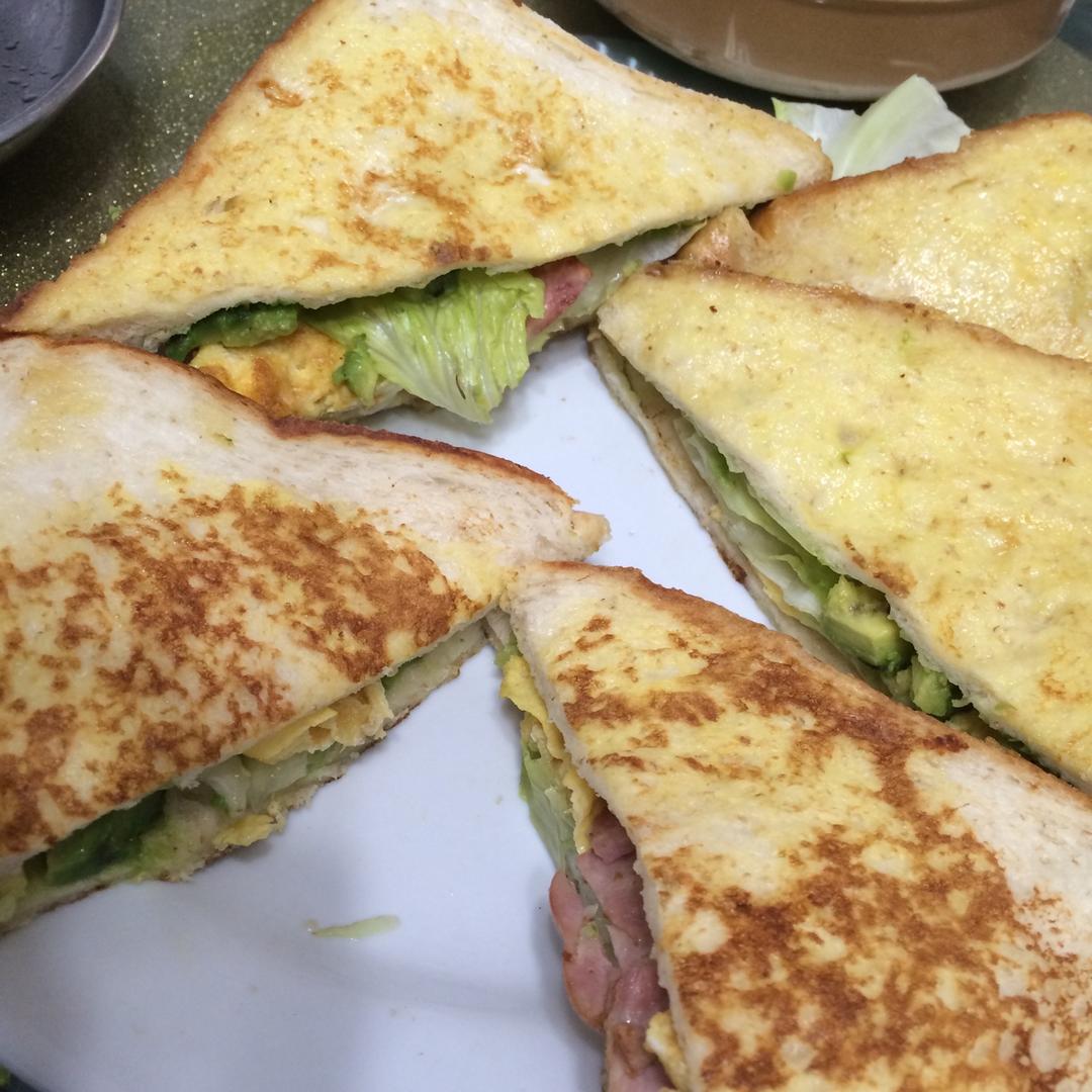 deeco 做过 宿舍狗快手菜之香煎西多士 按照步骤做的,里面夹的食材是:生菜、培根、牛油果(切片),不知道是手残还是怎么样,反正做不成多士那样,煎的时候中间的食材会漏出来,多士四边也没办法煎得黏在一起像封口一样,味道也就那样了,煎过之后表面很油,拿着吃不方便。 #早餐•2016年11月6日# 2016-11-06