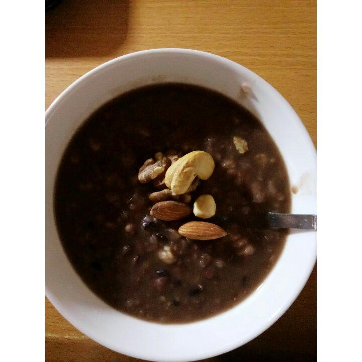 Yvonne_丸子 做过 早餐•2016年11月14日 #早餐•2016年11月14日#美好的一天从早餐开始,今天是杂粮杂豆粥,加了一小块红糖,有点甜味,面上放了几颗坚果,欲罢不能,早安 2016-11-14