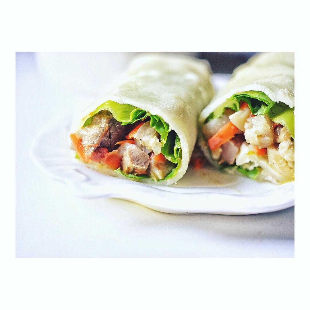 早~ 猪腿肉红萝卜生菜卷饼 我妈也爱吃 嘻嘻
