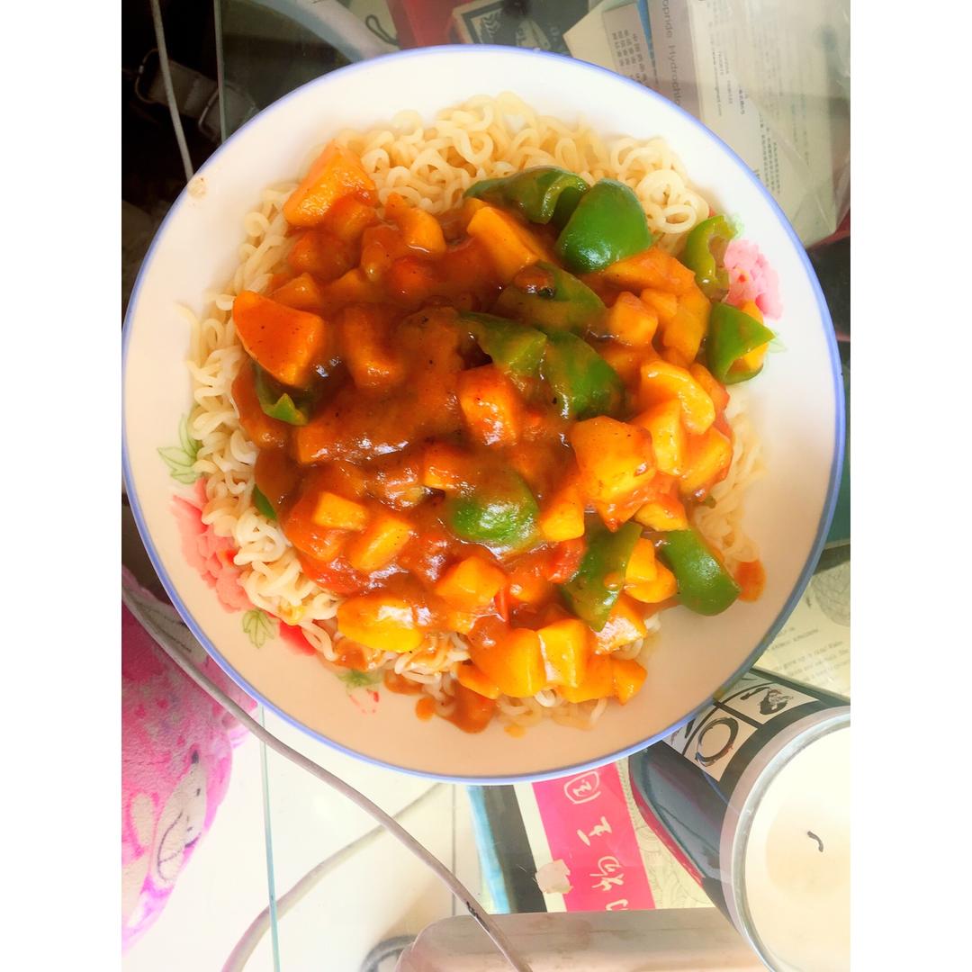 苹果咖喱拌面