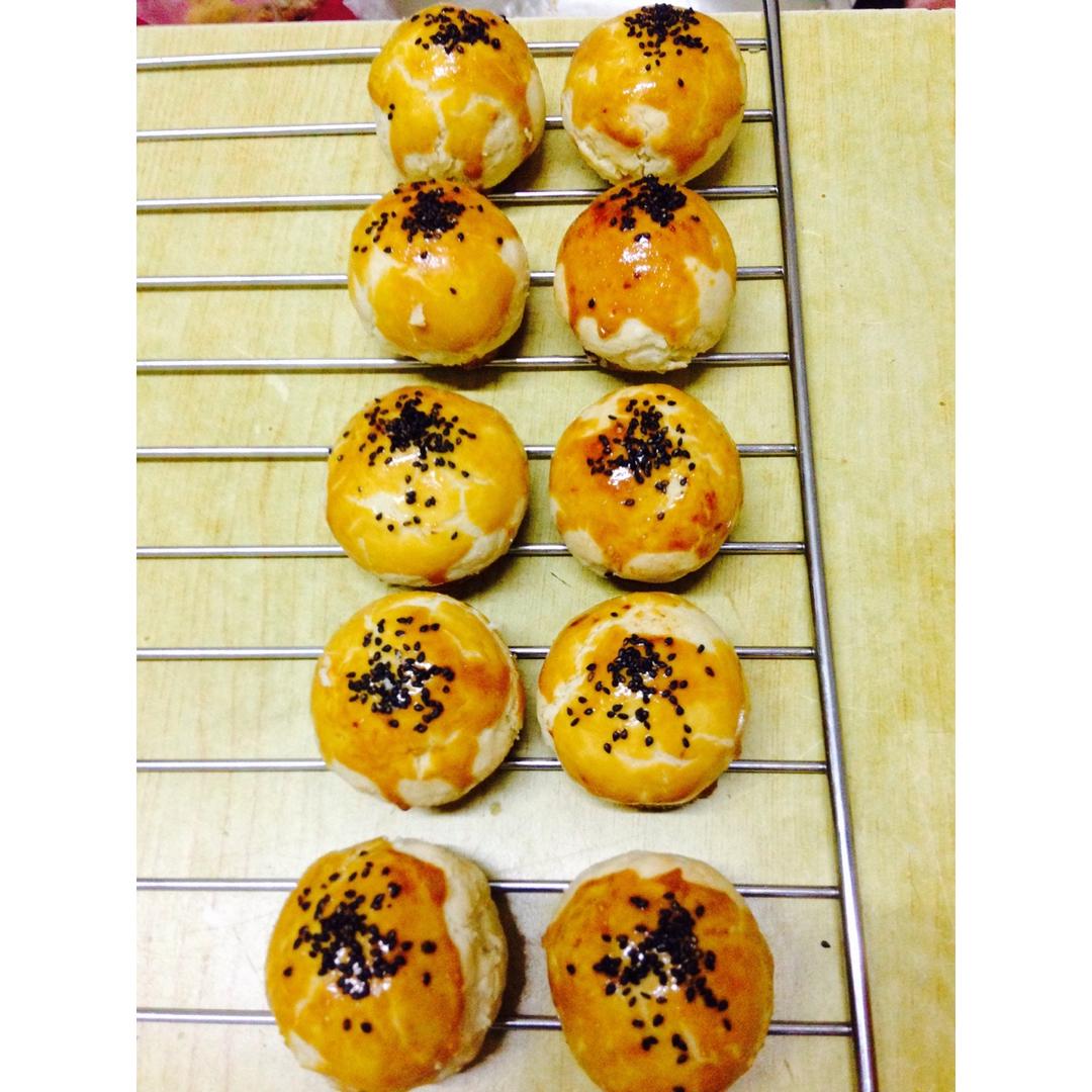 下午做的女儿爱吃的肉松蛋黄馅儿的,老公爱吃的豆沙馅儿的!我自己爱吃的蔓越梅饼干!