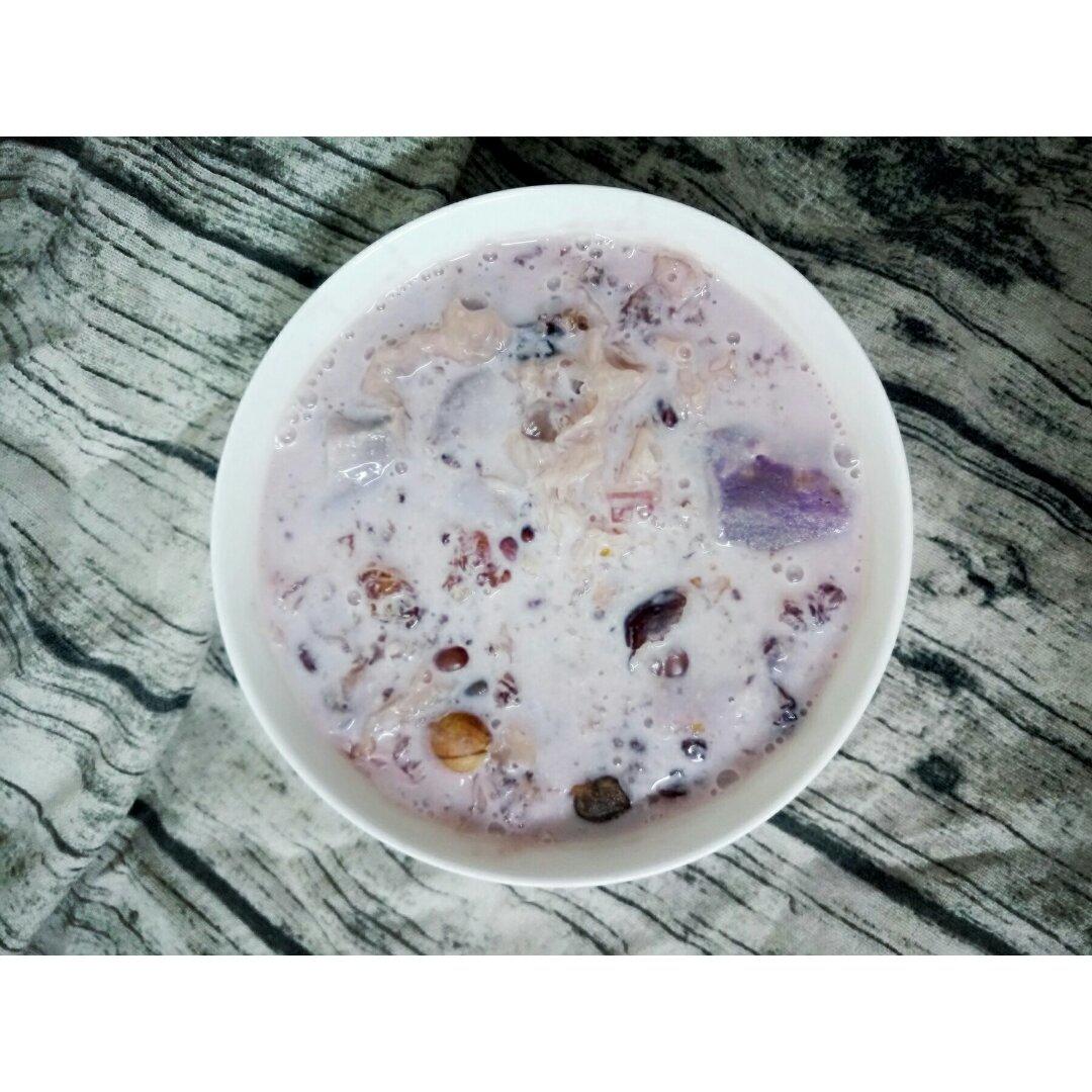 来,干了这碗紫薯、桃胶、莲子、红豆、皂米、雪耳牛奶羹,寒冬里的温暖😁😁