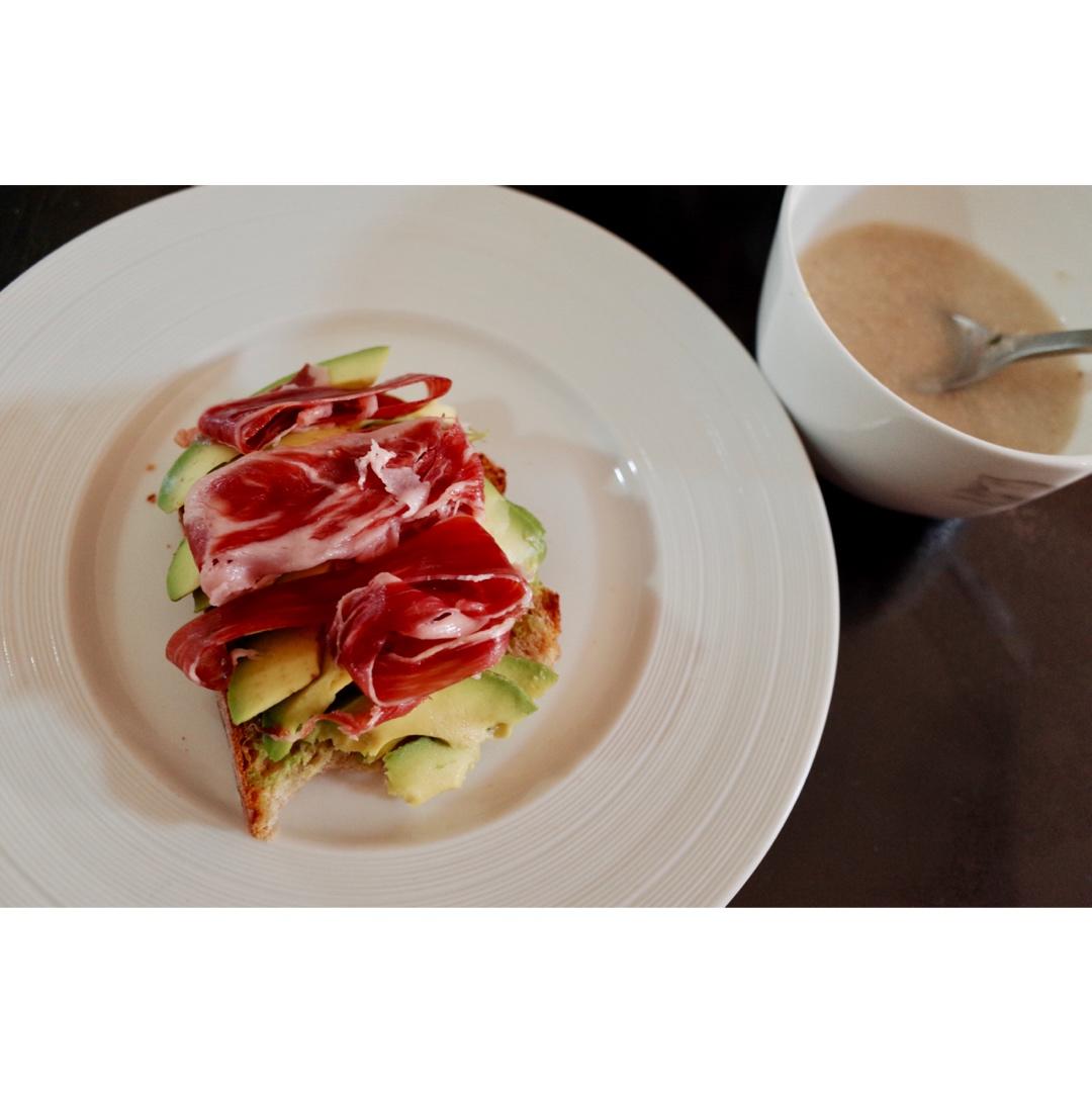 牛油果火腿三明治,配一碗燕麦粥,感谢每一餐❤️