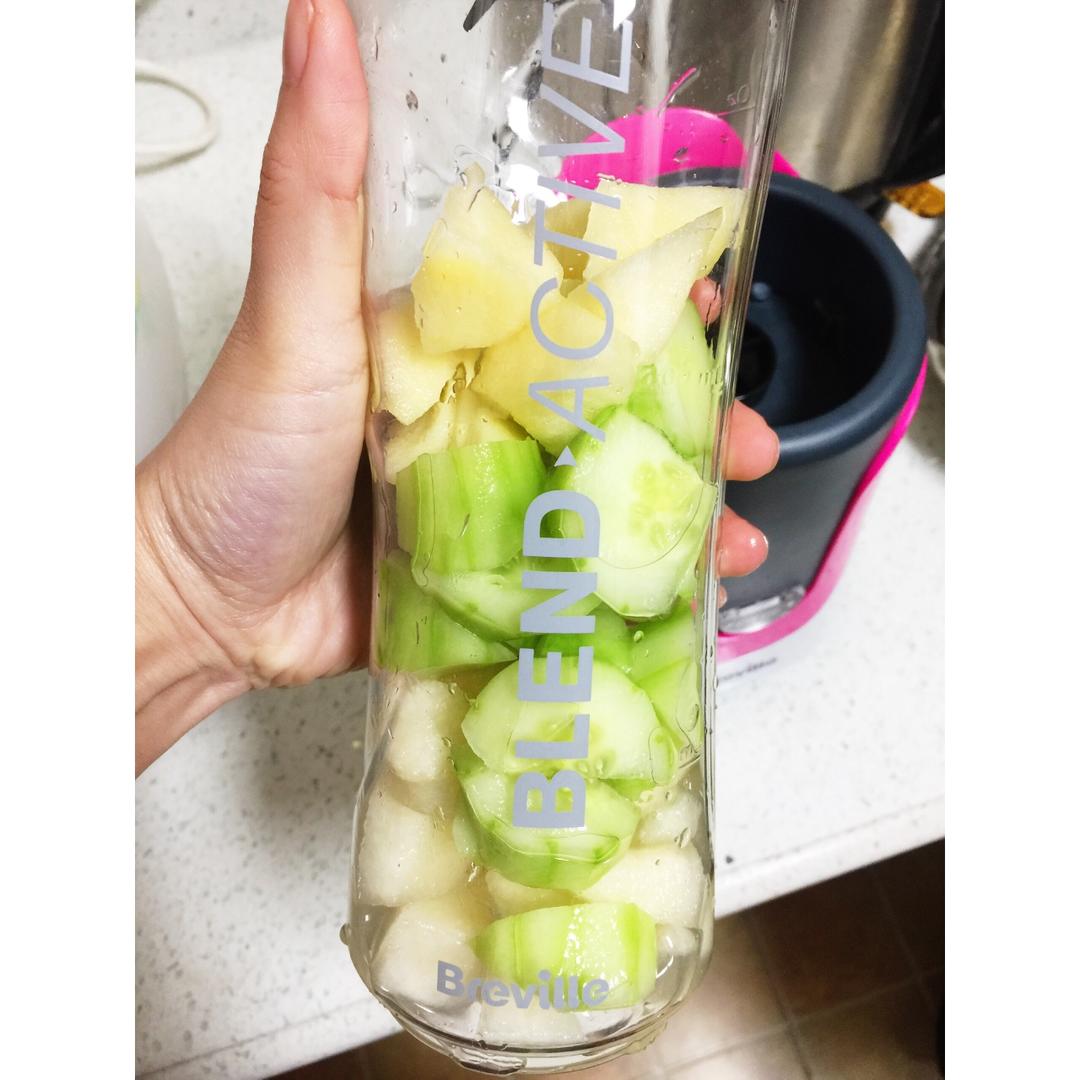 在昨天的基础上加了小半个苹果,味道稍有改善,昨天小伙伴分享说牛油果+猕猴桃,准备明天试试。
