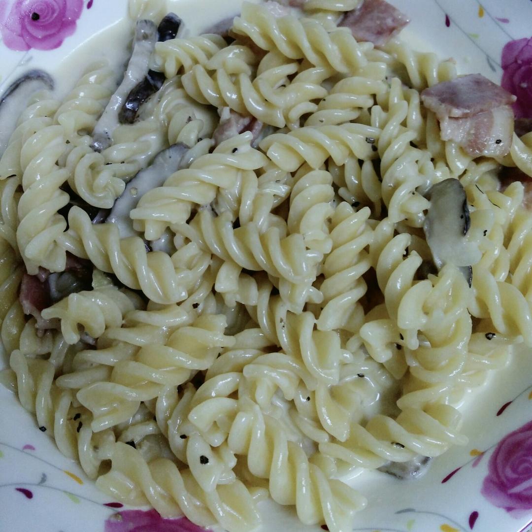 白蘑菇奶油培根意面