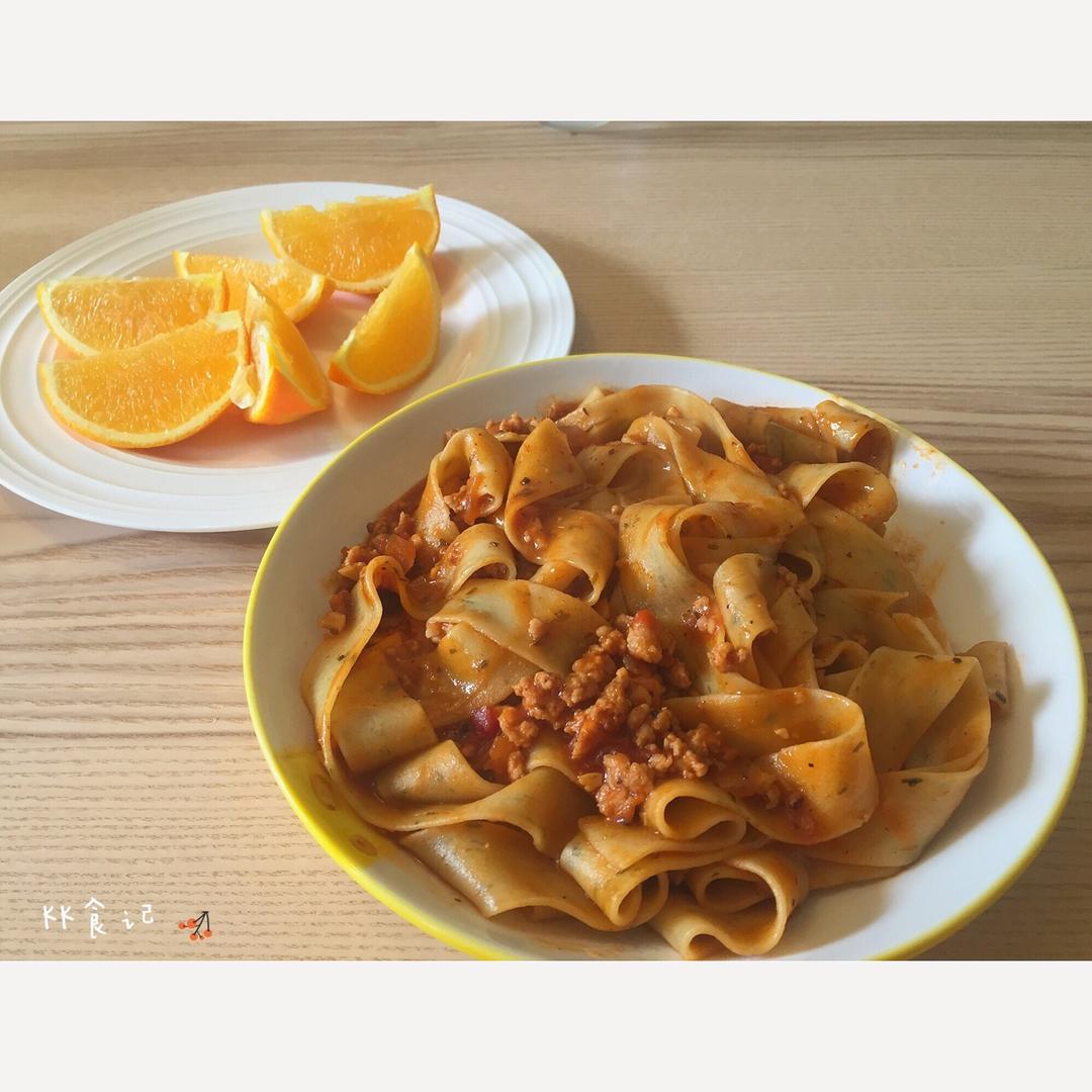 KEJIAoQI 做过 早餐•2016年11月26日 肉末番茄黑椒意面🍝宽意面对我来说比细的好吃~因为可以包裹更多的酱!这盘看着酱多其实是加了水所以就算舔盘也不会咸~面是在西雅图派克市场买的手工面里面有蒜和罗勒放了一人份这....涨成了两人份吧....吃完这顿等晚饭好了🌚 #早餐•2016年11月26日##KK食记# 2016-11-27