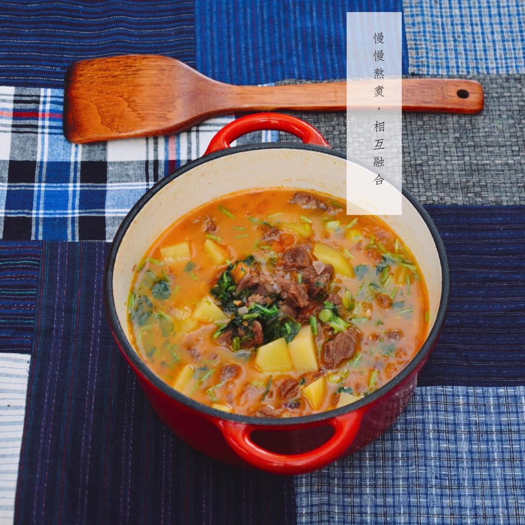 慢慢熬煮,相互融合,西红柿炖牛腩