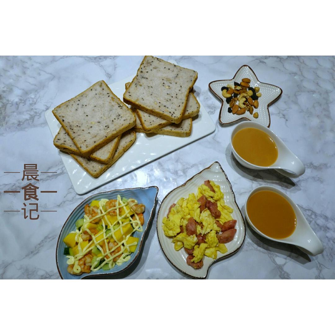 芝麻燕麦软土司 鲜虾芒果沙拉