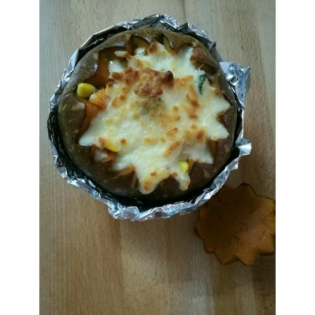 南瓜蒸了15分钟,又烤了15分钟,看着更像老椰子哈哈