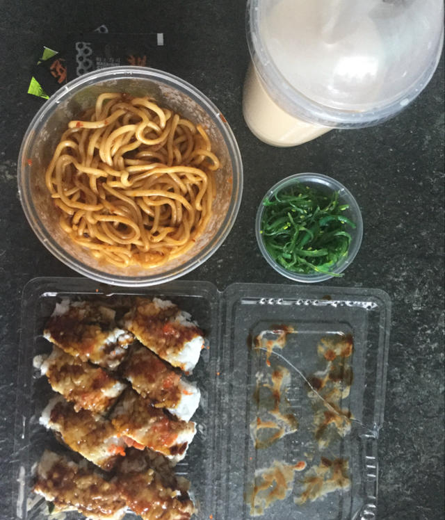 katherine魔法师的兔子 做过 午餐•2016年12月8日 午餐:港式车仔面🍝+寿司缤纷卷🍣今天午餐叫的门口寿司店外卖(看视频课程眼睛好辛苦😔,好在明天有面授😘),奖励自己奶茶☕️(希望能在烹饪的路上越走越远)🍲 #午餐•2016年12月8日# 2016-12-09