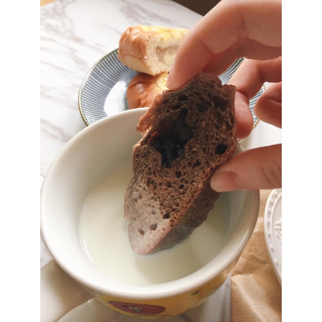 小笙家的巧克力面包沾点热牛奶吃