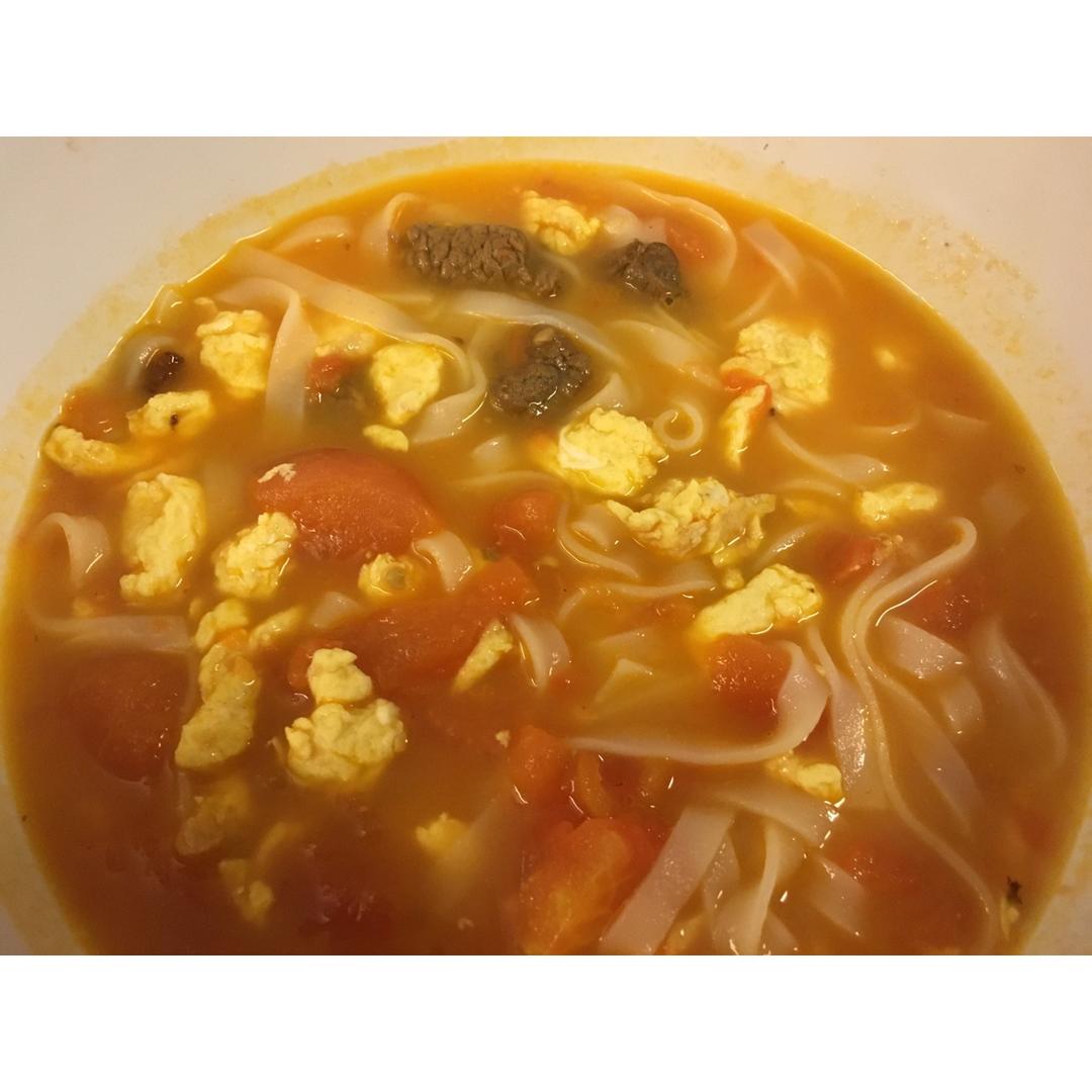 猪油打底的番茄炒蛋,加了河粉,调了MSG哈哈