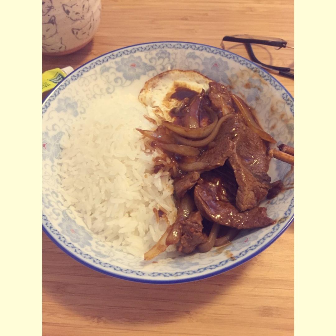 洋葱牛肉饭。
