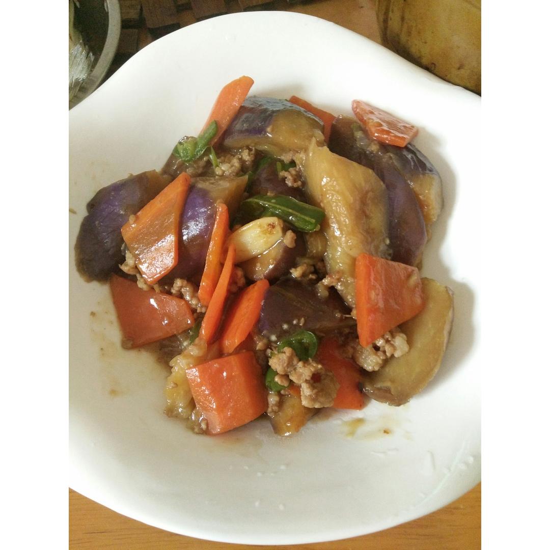 煮了好久茄子有没断生,然后青椒放太早变软了,加了喜欢的红萝卜,味道还行吧