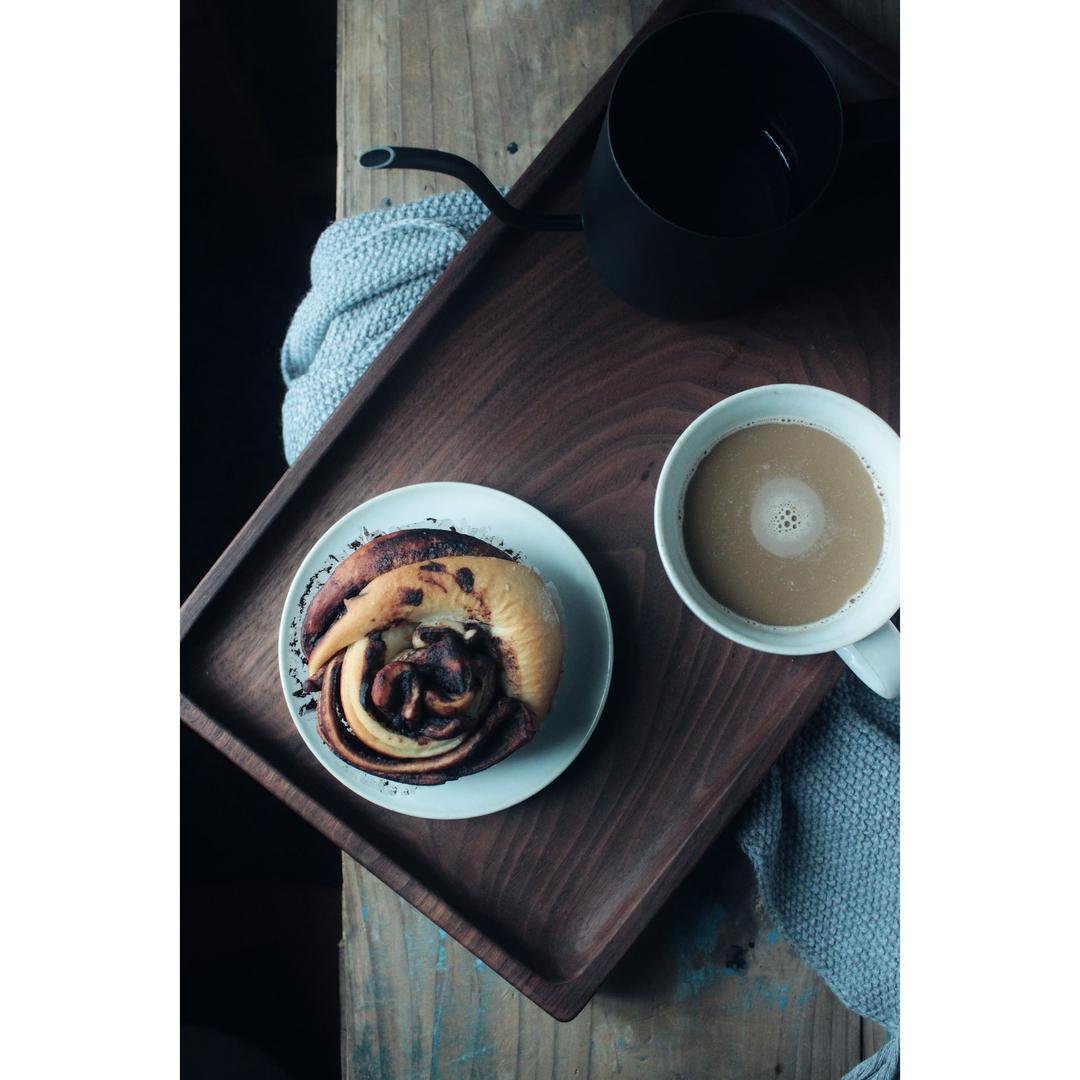 早餐,可可卷,咖啡。