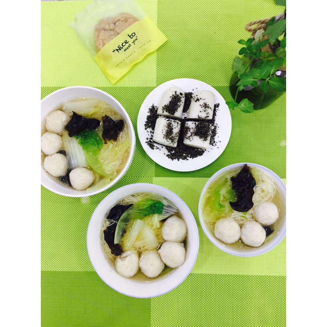 Tree-13 做过 早餐•2016年12月15日 12/15 Morning Sunny Thursday4⃣️🌤鱼丸菜汤面🍜➕芝麻蘸年糕 手工制作 香甜软糯 #早餐•2016年12月15日# 2016-12-15