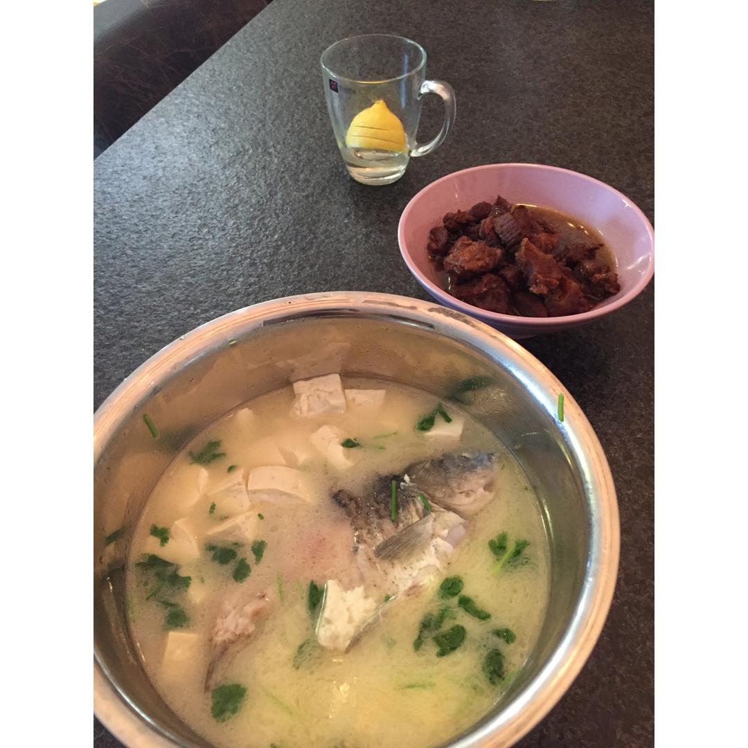 鱼头炖豆腐 炖牛肉 炒小白菜