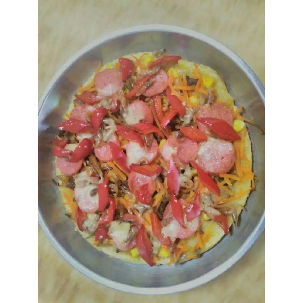 第一次做的披萨,用的普通面粉😂😂但是也很好吃,小朋友很喜欢😍