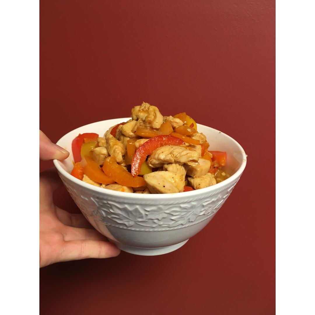 软小微风吹 做过 菜花饭 Cauliflower Rice 彩椒鸡胸肉 许大厨炒的炒nun的😋底下埋的是种草已久的菜花饭煮的稍微有点湿 比较像泡饭 不过也不错 #午餐•2016年12月19日# 2016-12-20