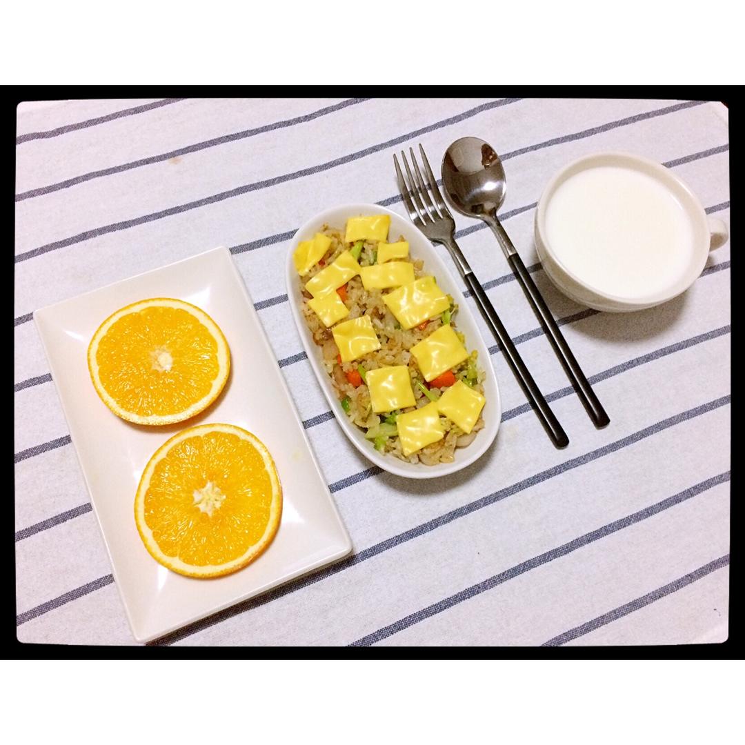 ^_^ 2016.12.26 牛奶+芝士焗蔬菜炒饭+甜橙。蔬菜炒饭加芝士简直绝配,溪大爱☺