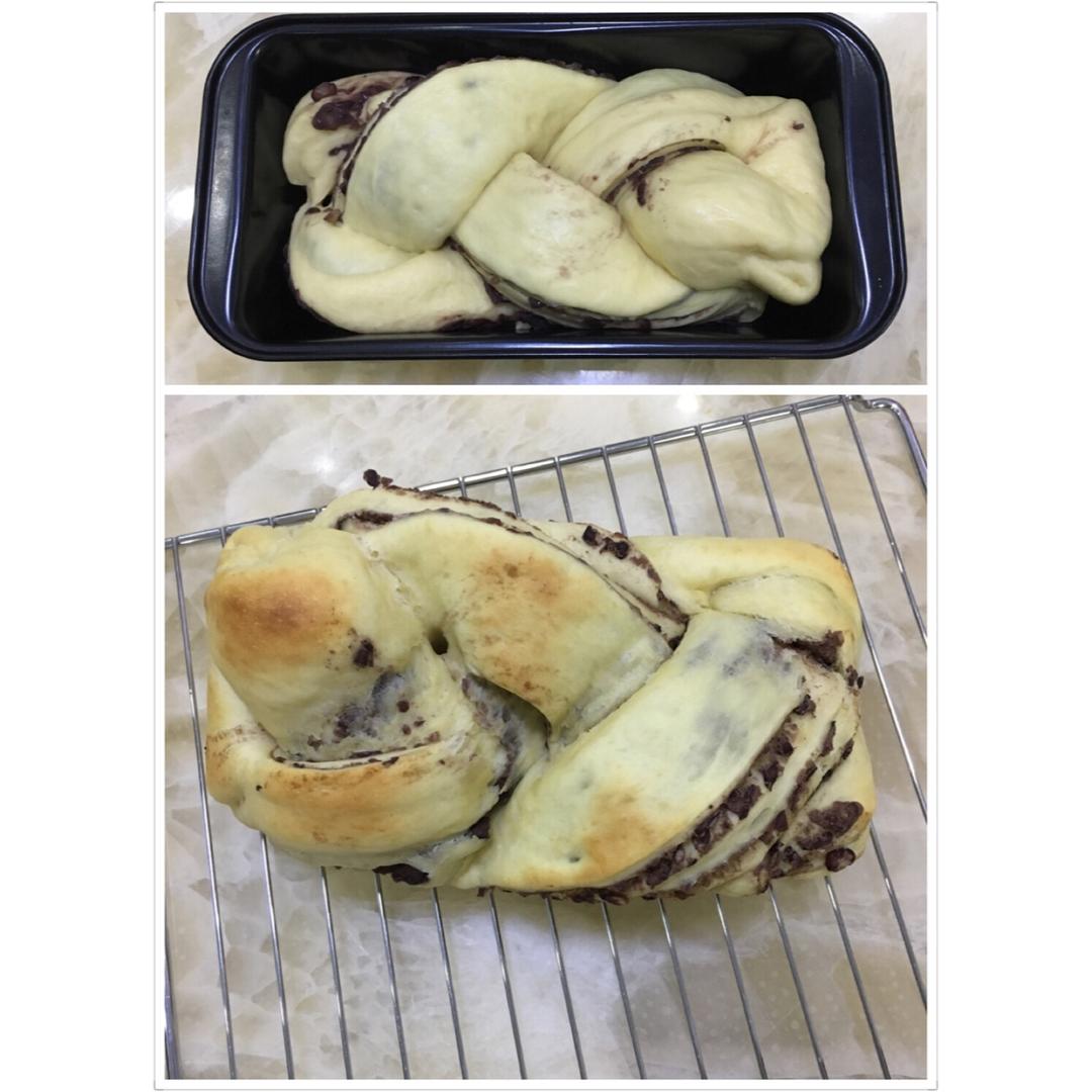 用面包机做的面包面团,然后就是排气和夹红豆馅。