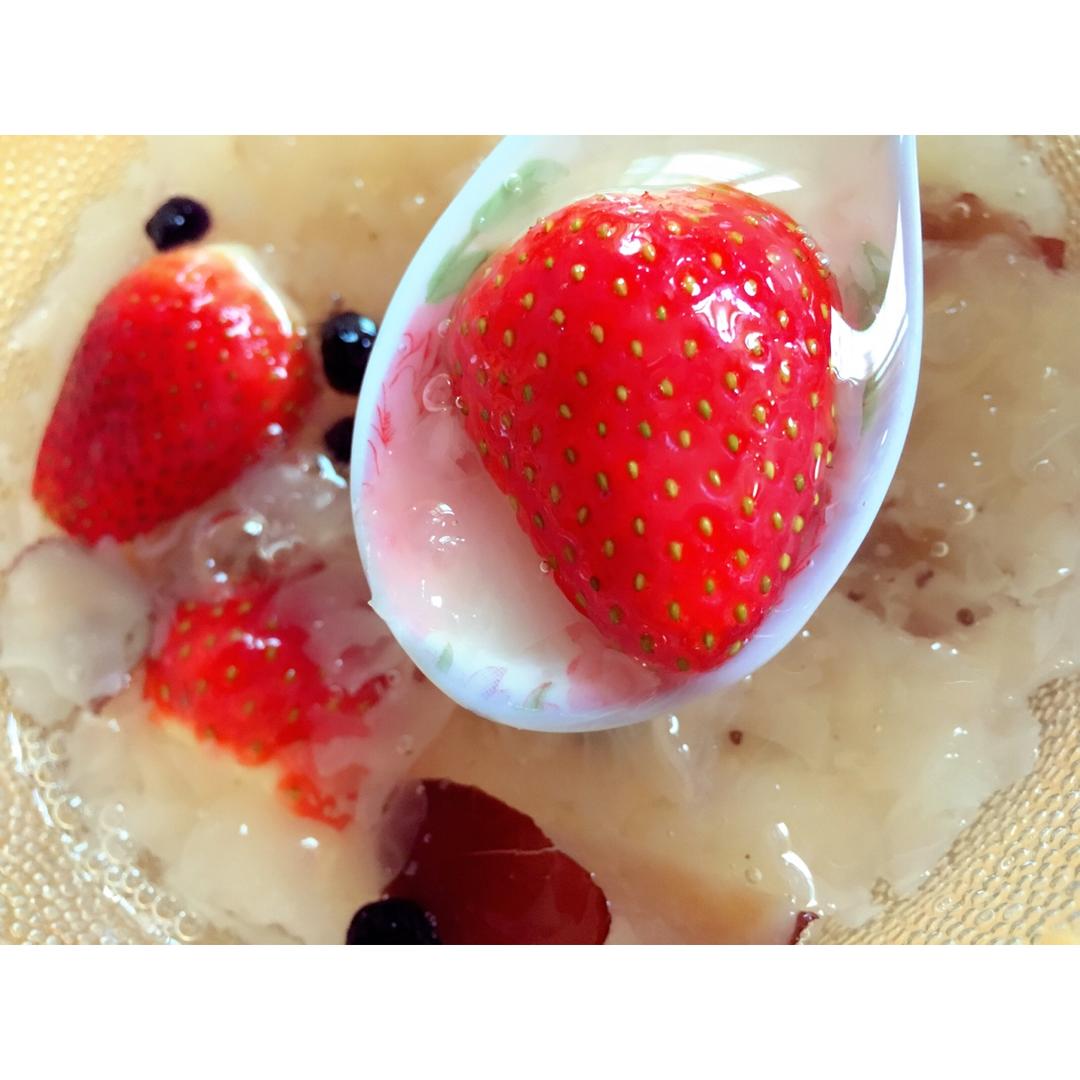 雪耳红枣草莓糖水