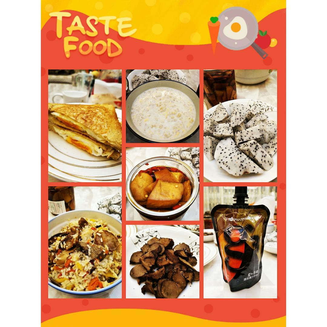 ╰孖杭☆ 做过 早餐•2017年1月5日 #早餐•2017年1月5日#鸡蛋牛奶燕麦粥土司三明治羊肉胡萝卜抓饭卤牛肉酸辣萝卜皮火龙果和G3果汁一大早就遇到糟心的事,今天宝贝儿期末考试,出门就遇到电梯被别的楼层霸着,足足十分钟!自己不走还祸害别人迟到!希望不要影响宝贝儿的心情,考试一切顺利! 2017-01-05