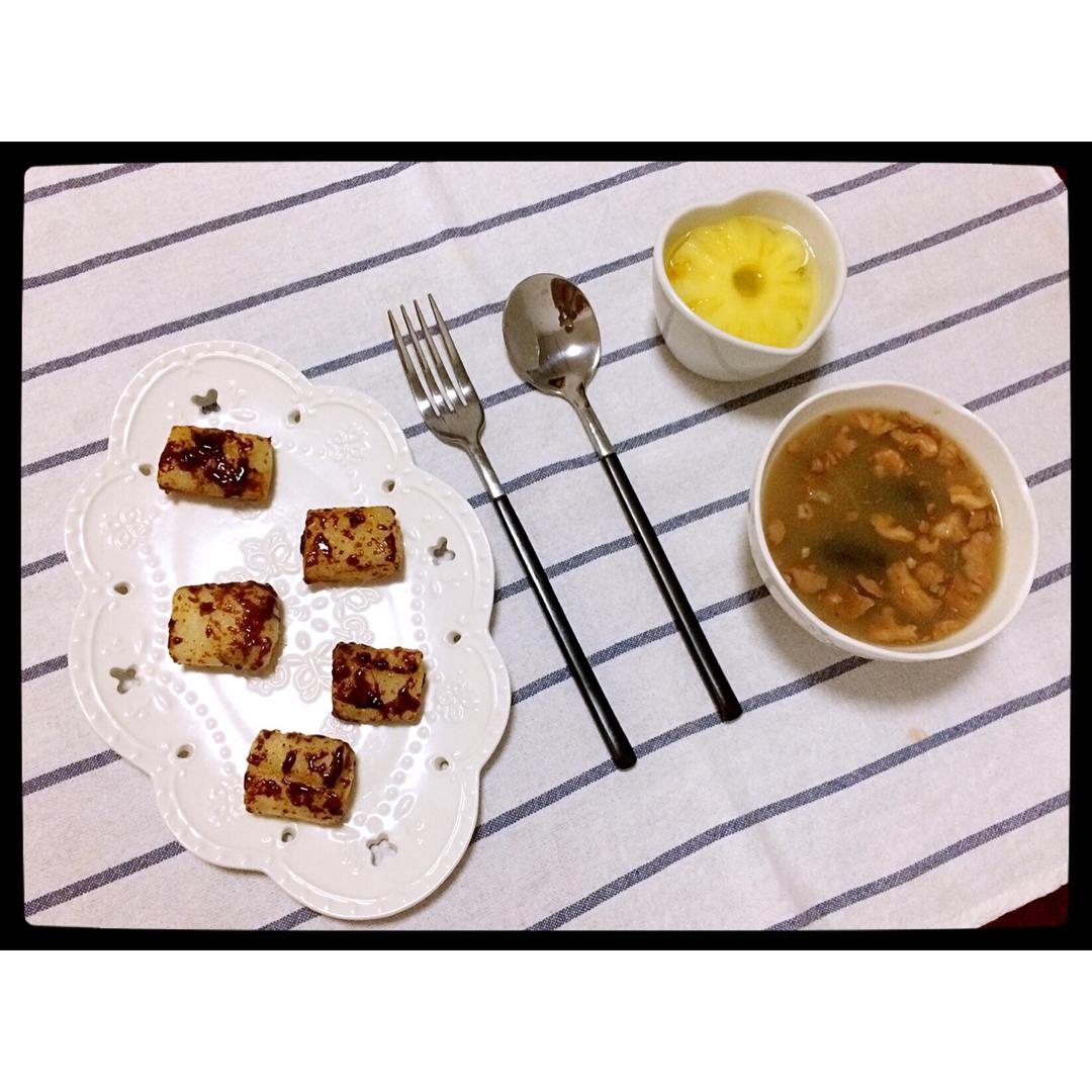 ^_^ 2017.1.5 腊八粥+红糖年糕+菠萝罐头。腊八节,喝碗热热的腊八粥,道一声早安🌹🌹🌹
