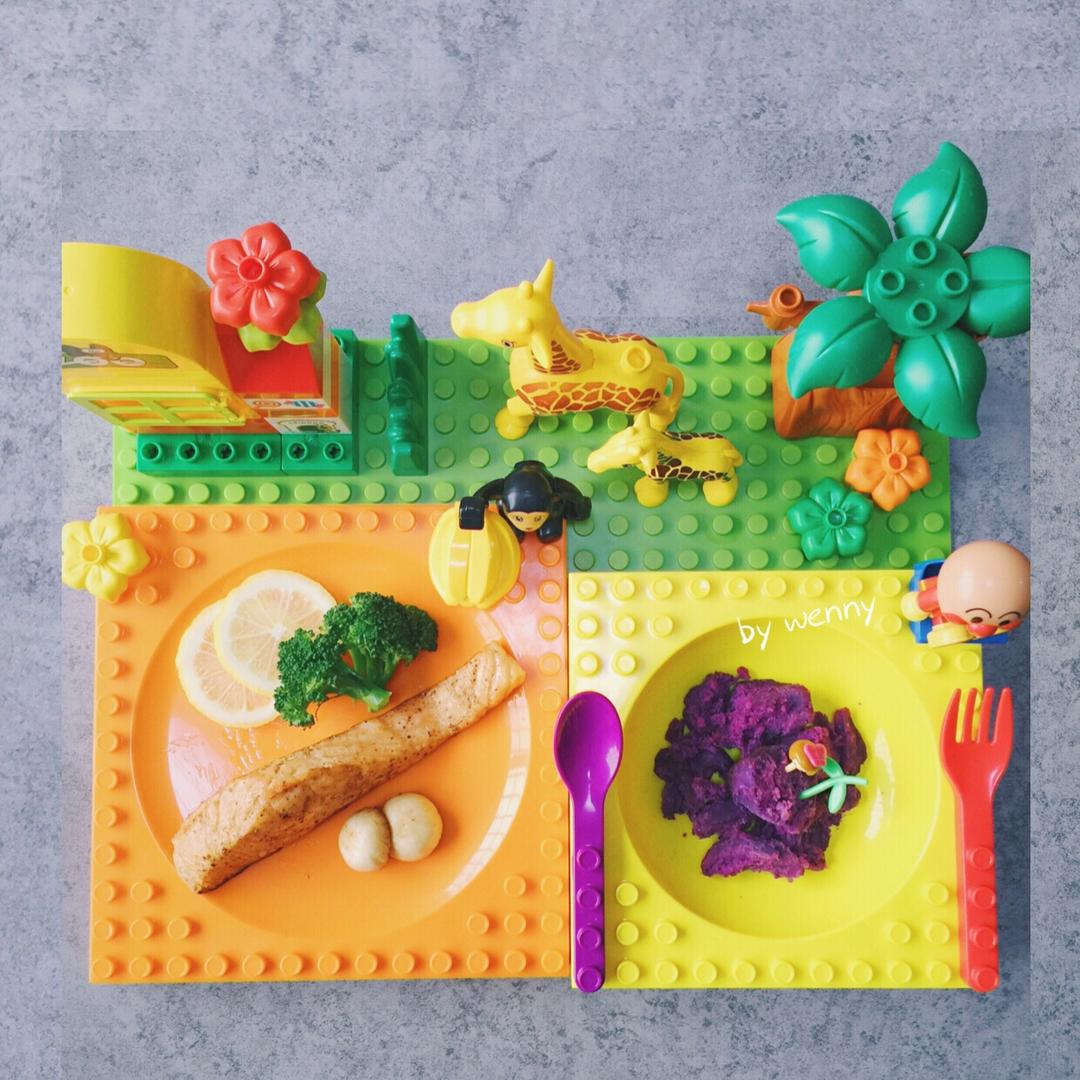 儿子的午餐,香煎三文鱼➕紫薯泥
