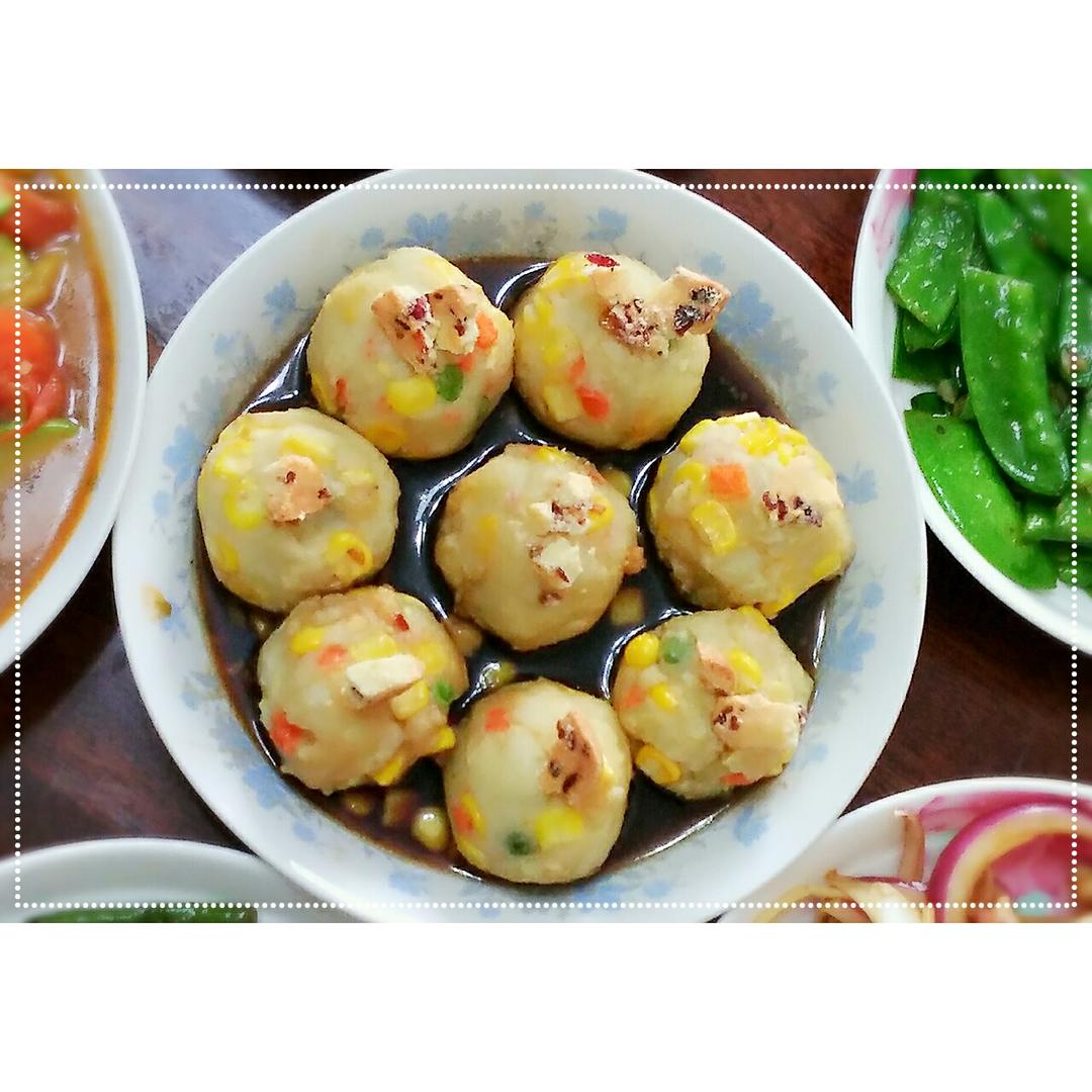 高颜值装逼格的糖醋浇汁椒盐土豆泥