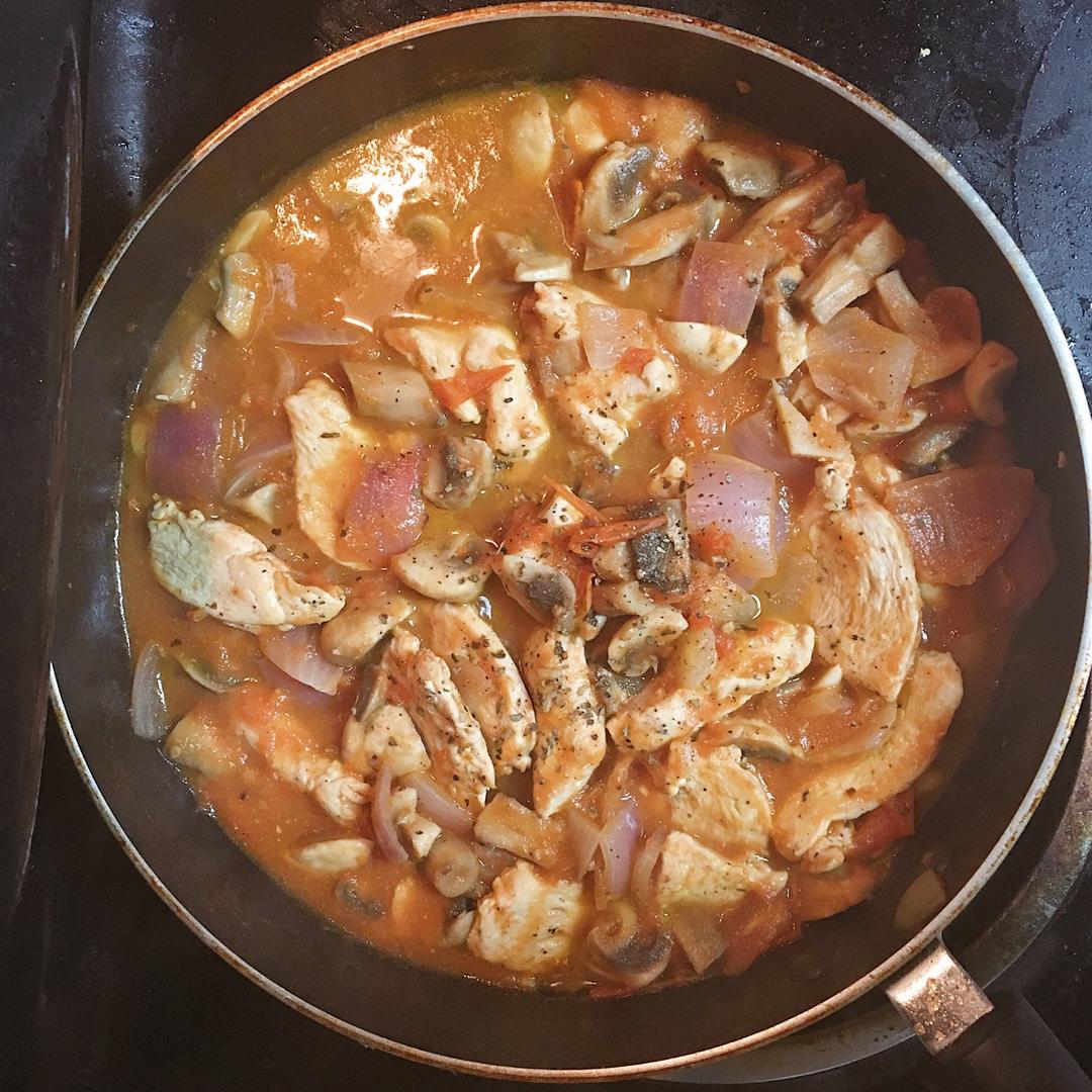 吃好喝好everyday 做过 番茄炖鸡胸丨健康·三餐 用的干罗勒 也没加糖 白胡椒 和迷迭香 加了蘑菇 然后鸡胸我在炒了洋葱和蒜之后 和番茄一起下锅的 这样炖了一下还挺入味的 也不怎么柴 最后下的蘑菇 很好吃呀🙇🏻♀️ #午餐•2017年1月14日# 2017-01-15