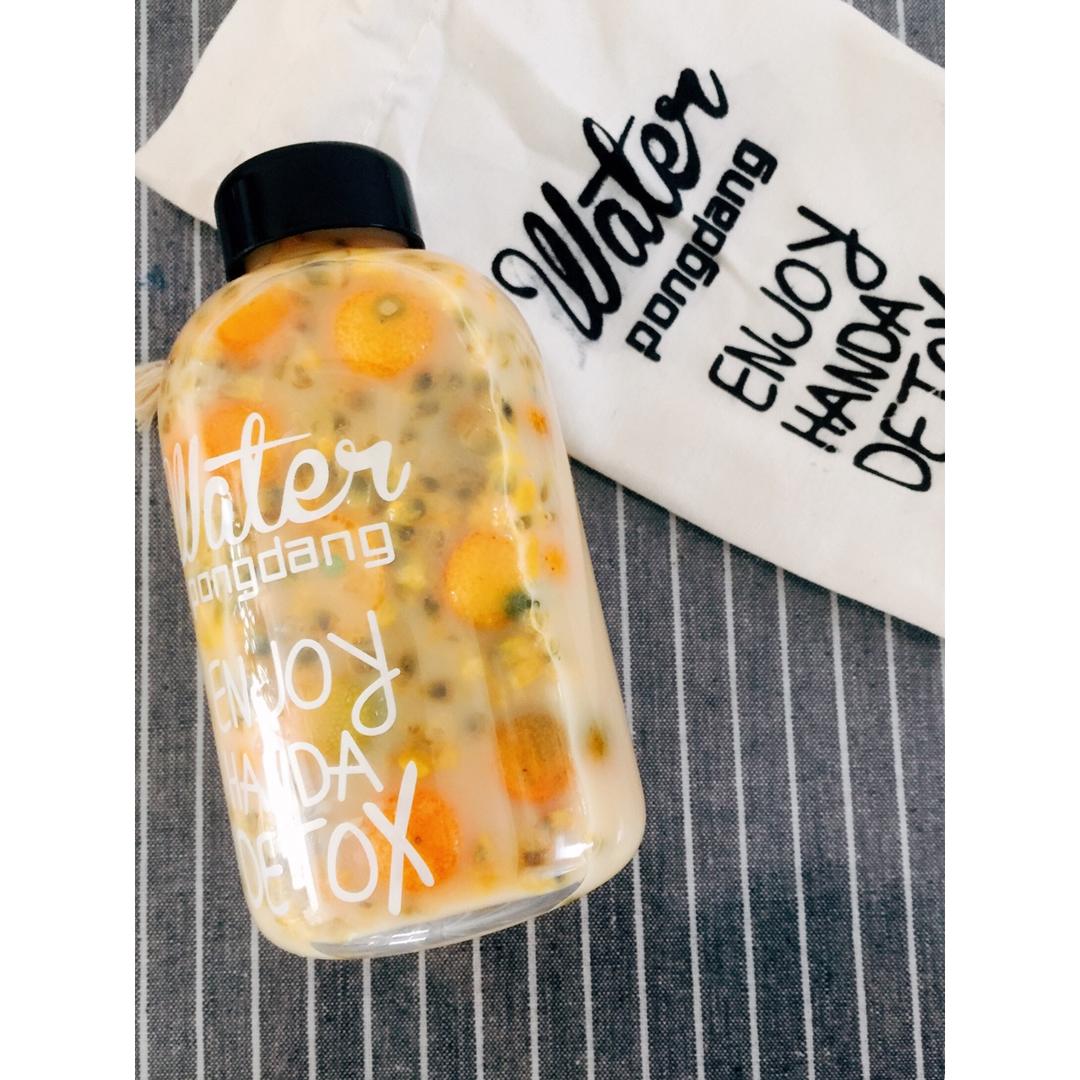 百香果柑橘特饮。百香果+养乐多+小金桔