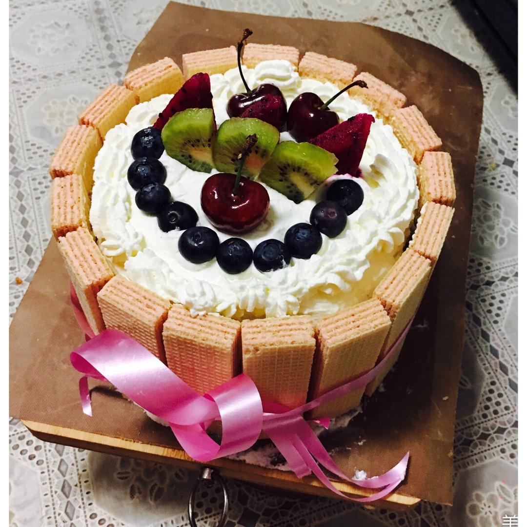 生日蛋糕教程【威化饼干围边】