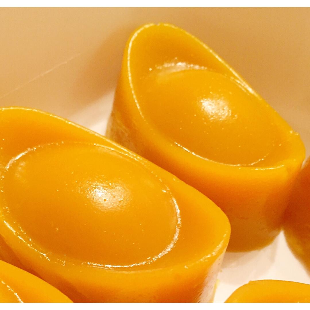 金元宝年糕,材料包括南瓜蓉,马蹄粉和黃糖。