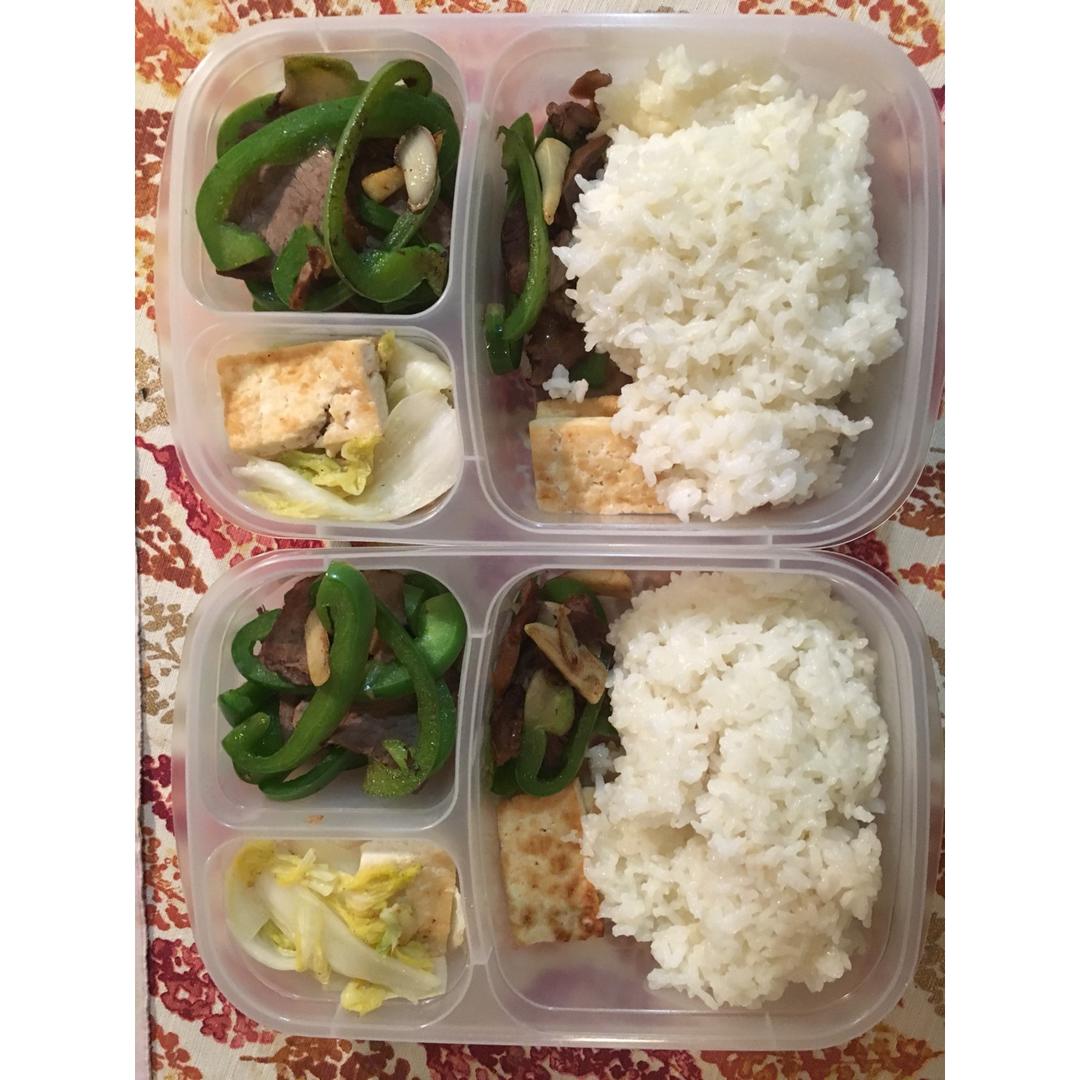 Agnes-wonderland 做过 午餐•2017年1月31日 工作餐,香煎豆腐大白菜和青椒卤牛肉,两个菜都超好吃~尤其是香煎豆腐,棒棒哒! #午餐•2017年1月31日##Daily life# 2017-02-01