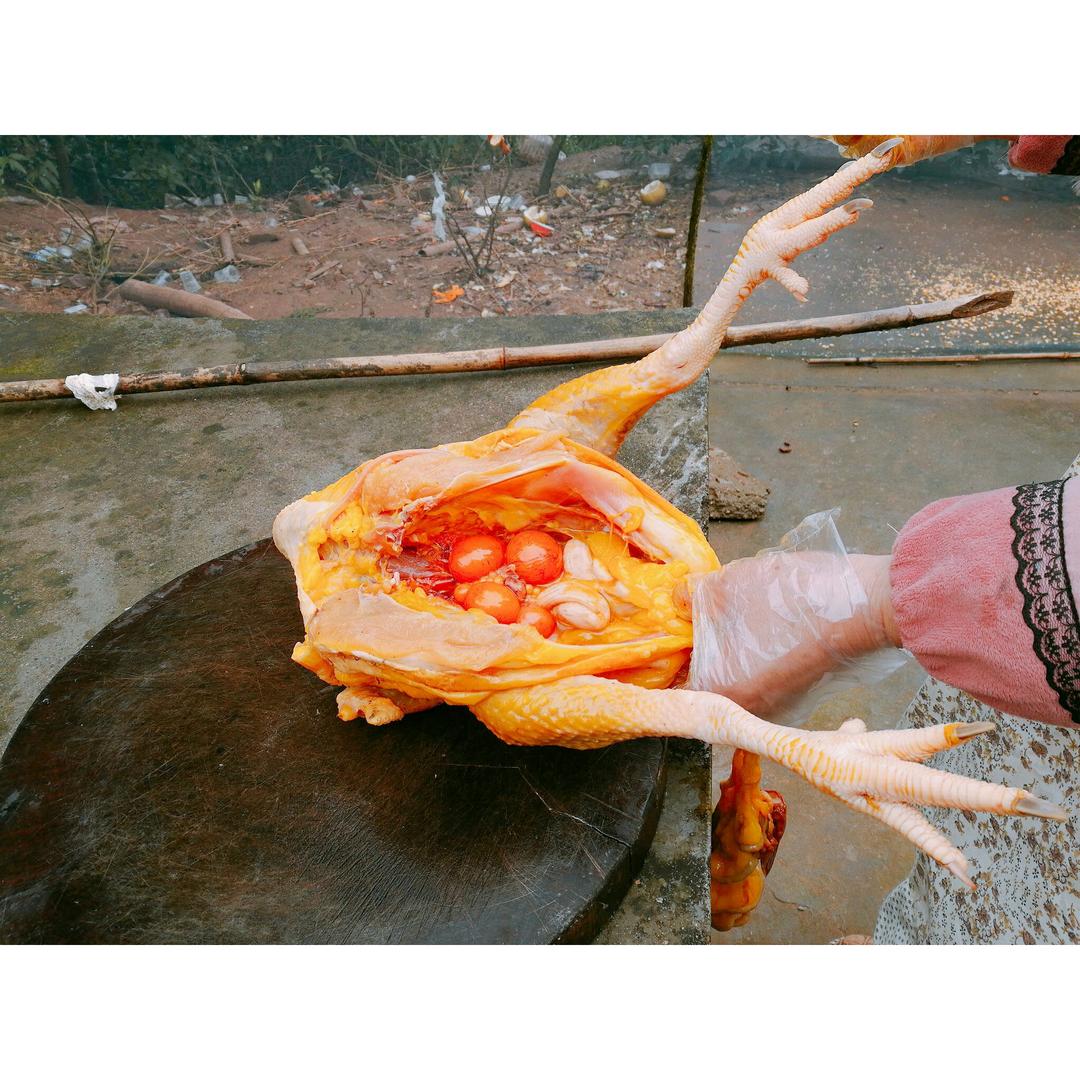 婆婆家自己养的鸡~吃玉米和谷,自己抓虫子吃~整只鸡都是黄澄澄的~