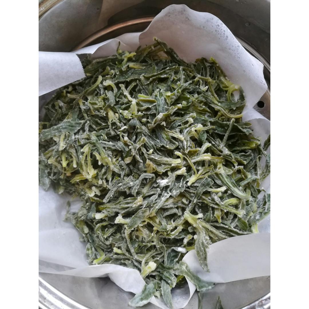 今天吃蒸面条菜。油辣子里放了好多花生,一个字,香。