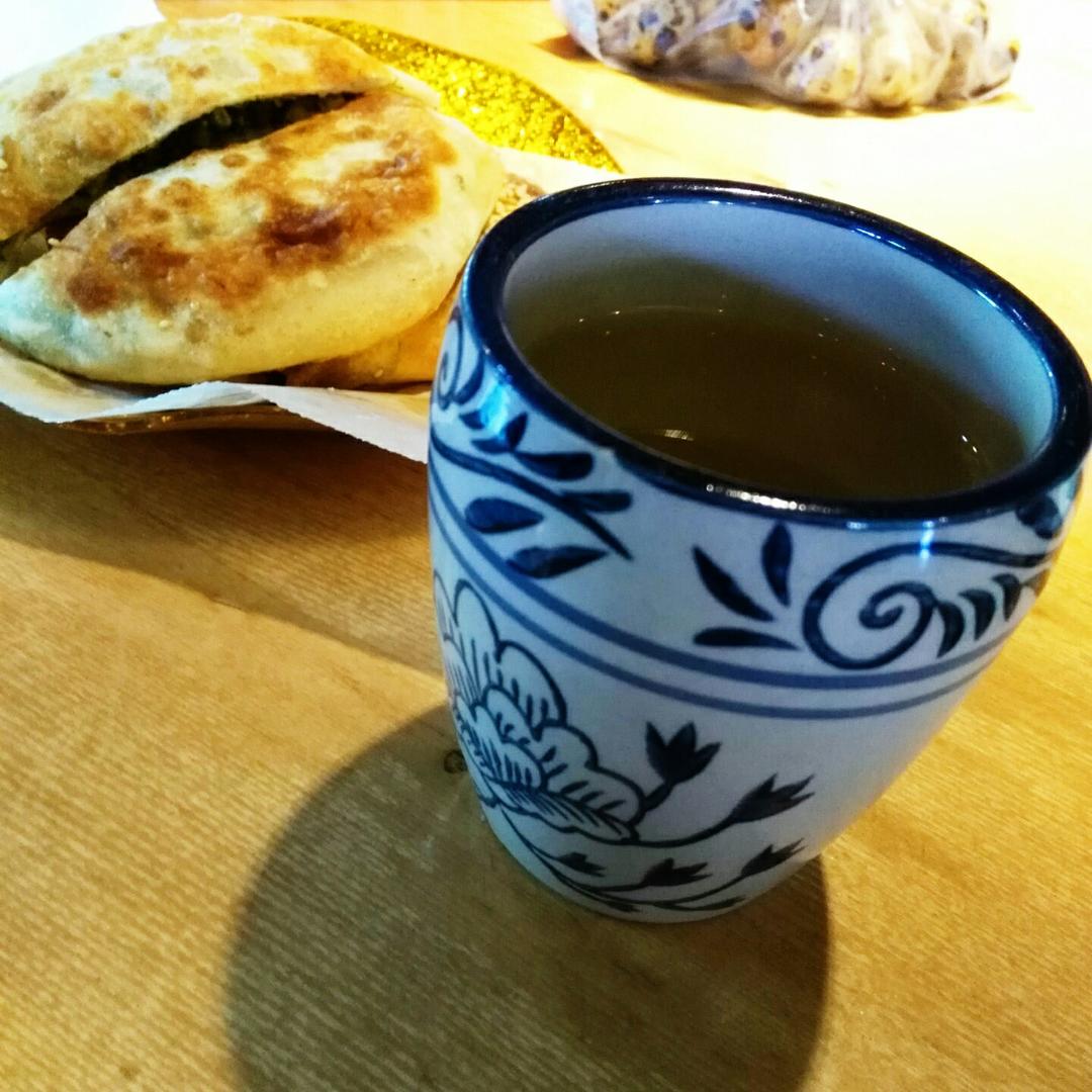 肉馅合子配一杯苦荞茶…
