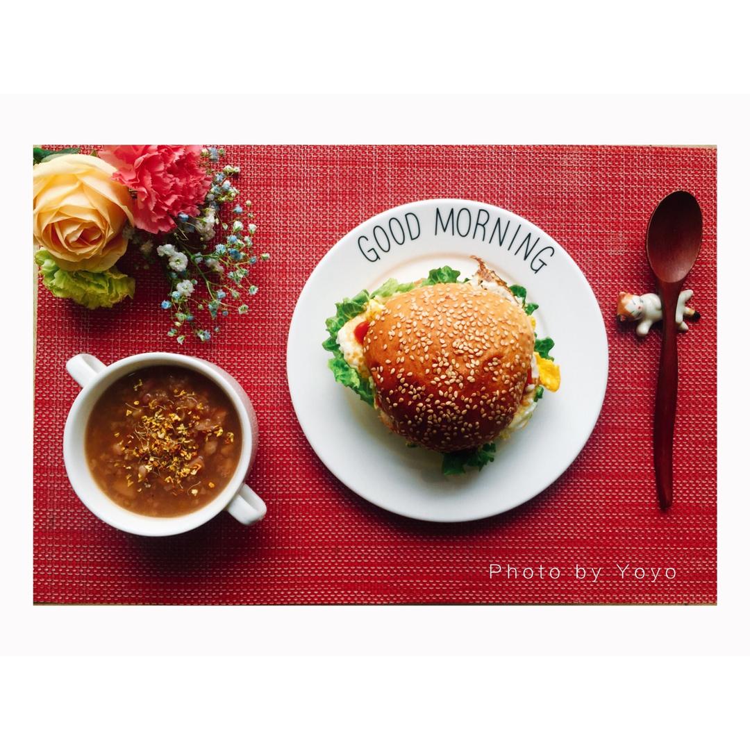 桂花红糖藕粥&自制汉堡,愉快的周末咯!😄