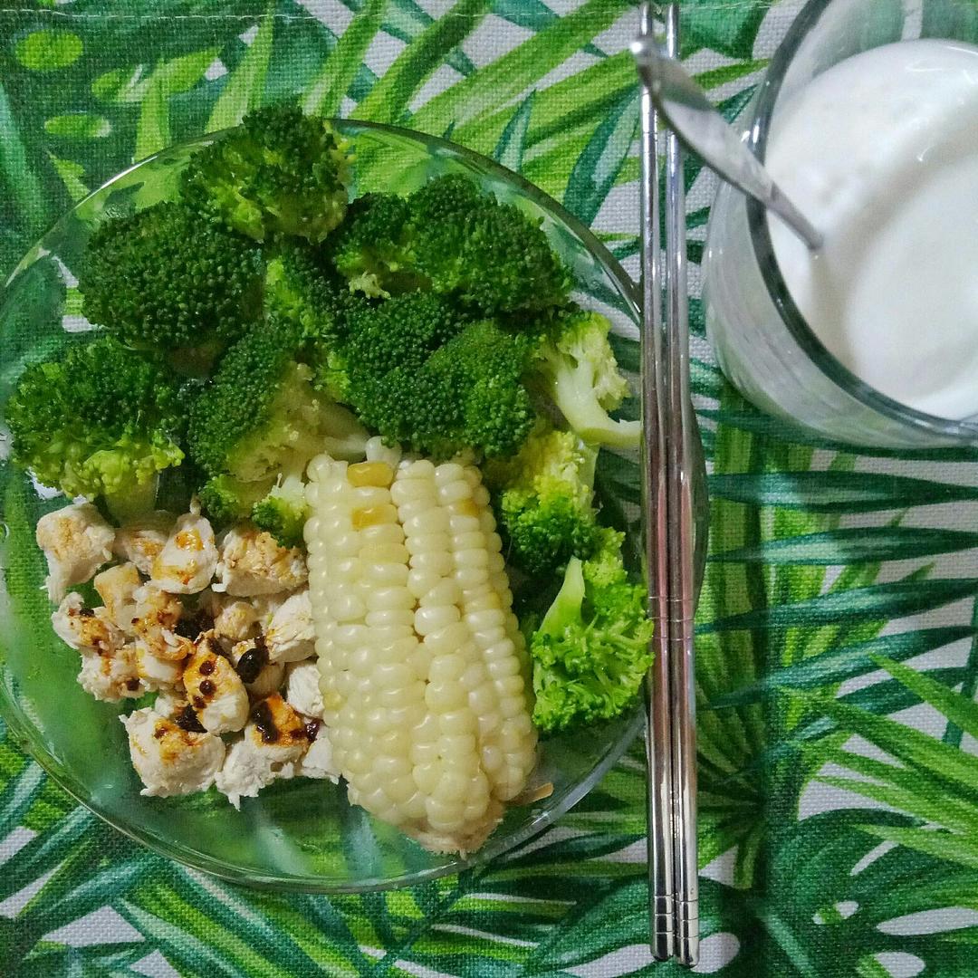 西兰花+糯玉米+鸡胸肉+酸奶
