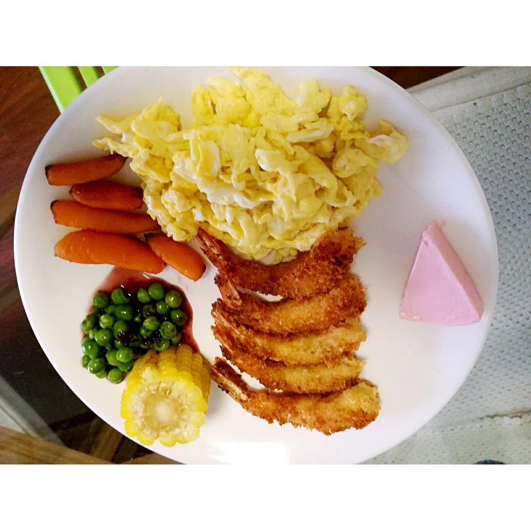 炸虾,果酱豌豆