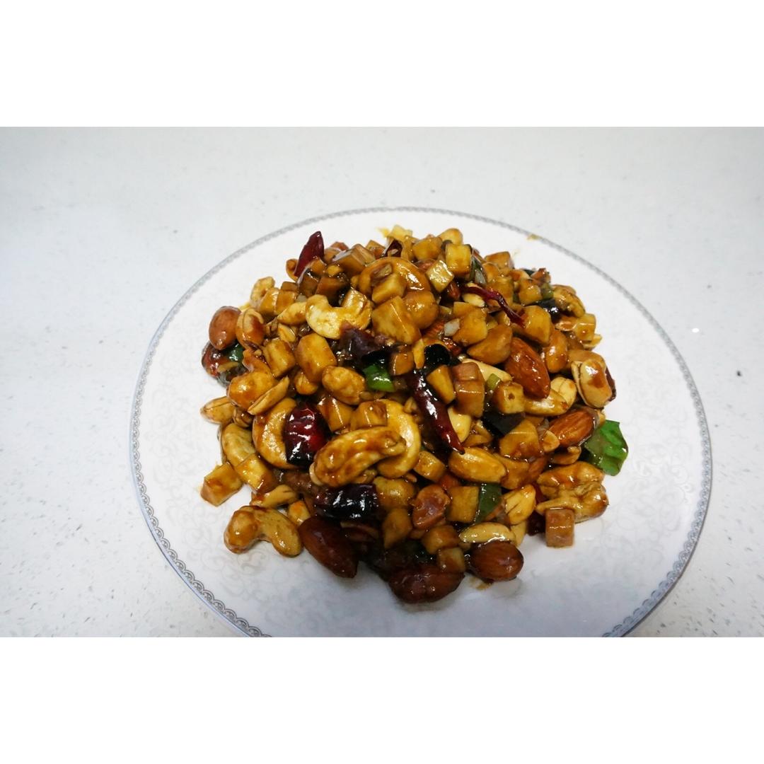今天实践了宫保杏鲍菇,某人撒了大把坚果进去,夺了杏鲍菇的戏,下次需要把杏鲍菇切大一些