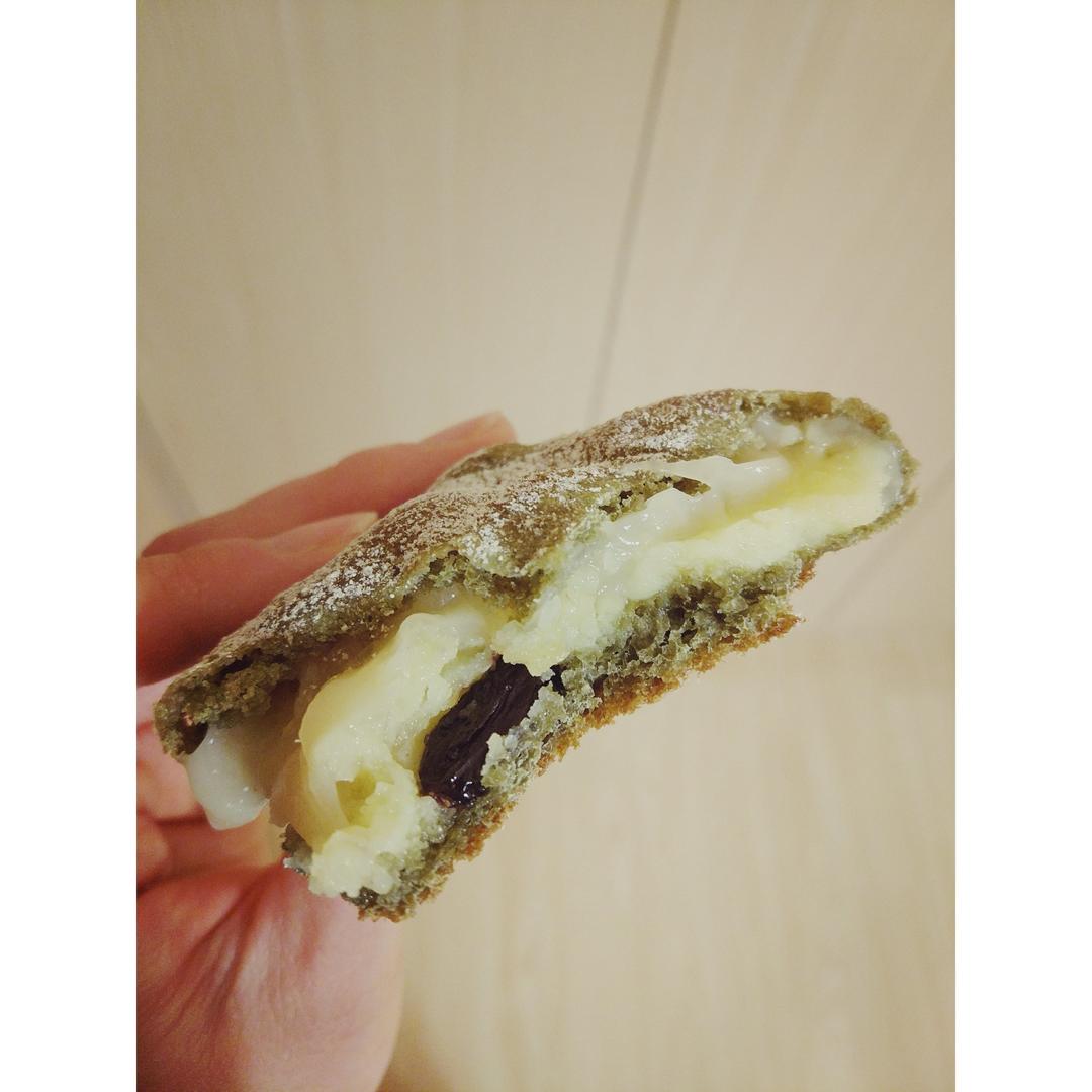 Ada的美日生活 做过 麻薯夹心可可(抹茶)软欧 面团250克全麦粉,250的乳清液体量太大,过湿,后又加了些全麦粉,下次要减少水量。8克抹茶粉。麻薯做了1.5倍的量,鹰栗粉换成了小麦淀粉,没盖保鲜膜蒸好太粘了,下次还是鹰栗粉不盖保鲜膜再试试。面团分了62克不到点/份,做了10个。内陷用了奶黄馅加若干葡萄干。170度预热,165度中层烤18分钟 2017-03-23