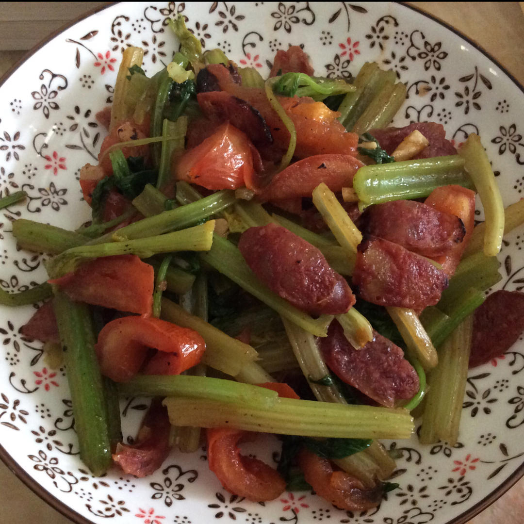腊肠炒芹菜