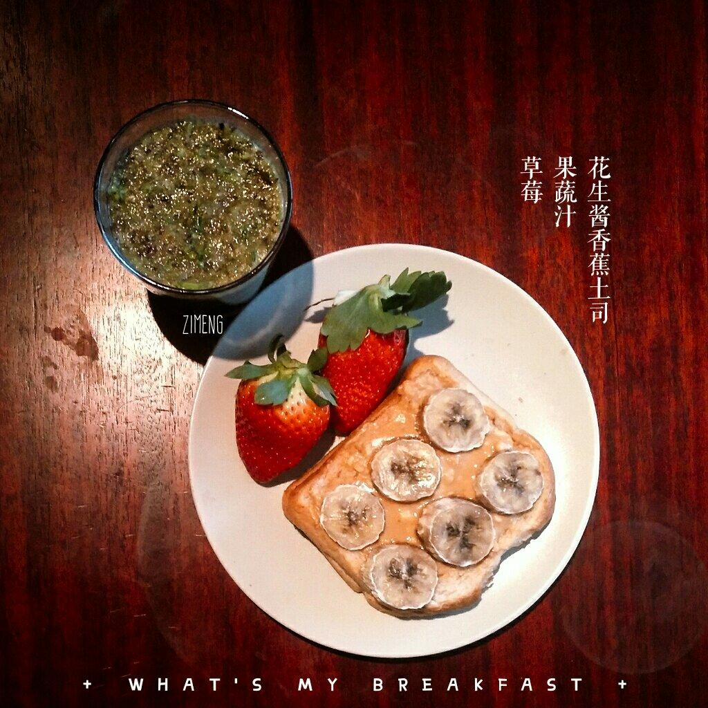 花生酱香蕉吐司+果蔬汁+草莓