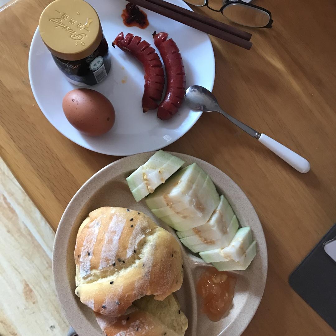 今天按照菜谱来的,香肠提前刷了一点橄榄油,很棒。